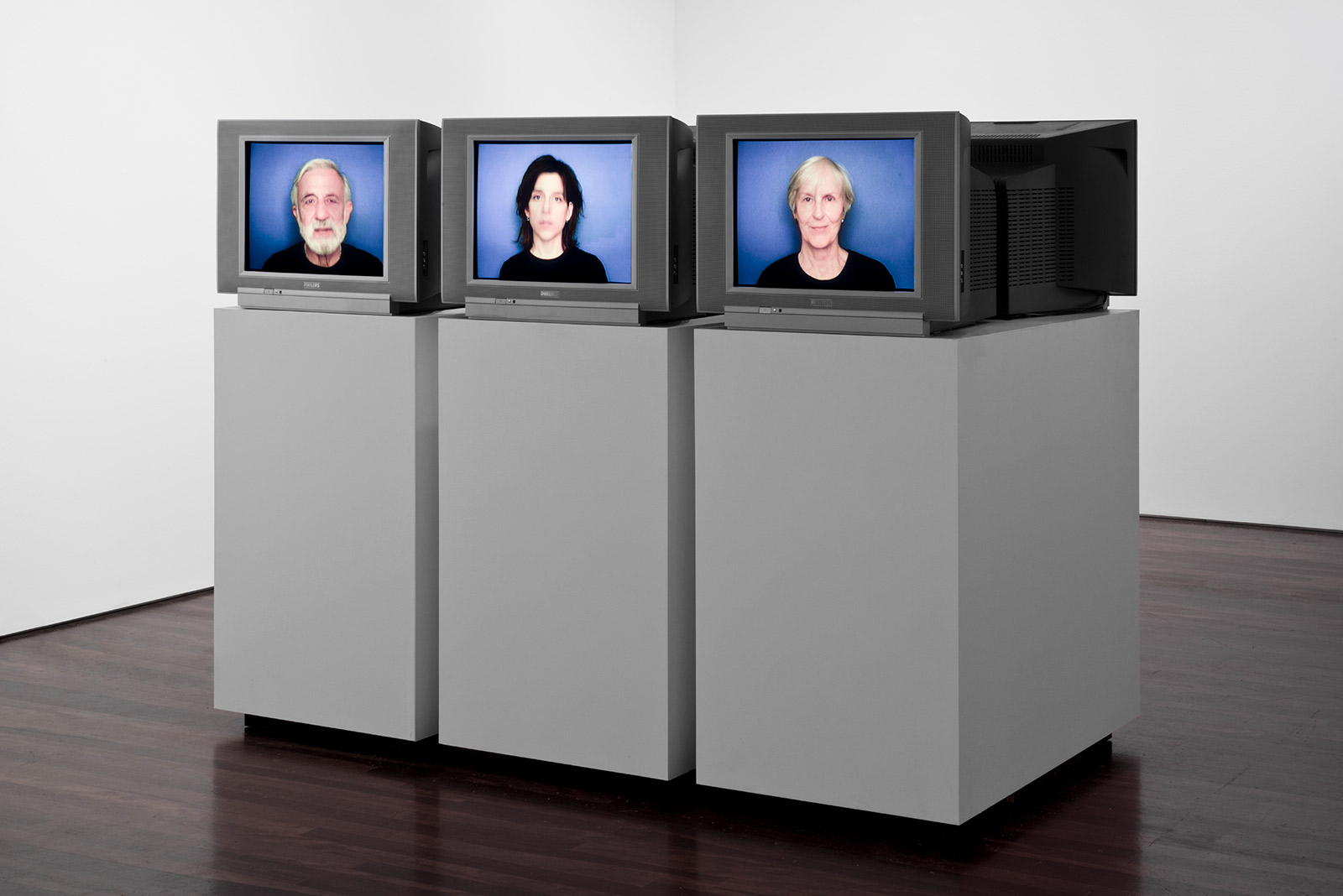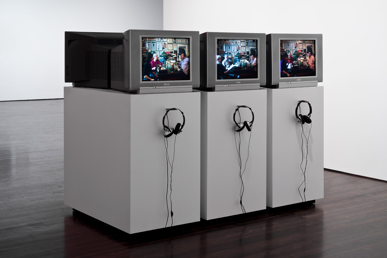 Accent Elimination, 2005. Six-channel video with sound, six televisions, three pedestals, dimensions variable.
