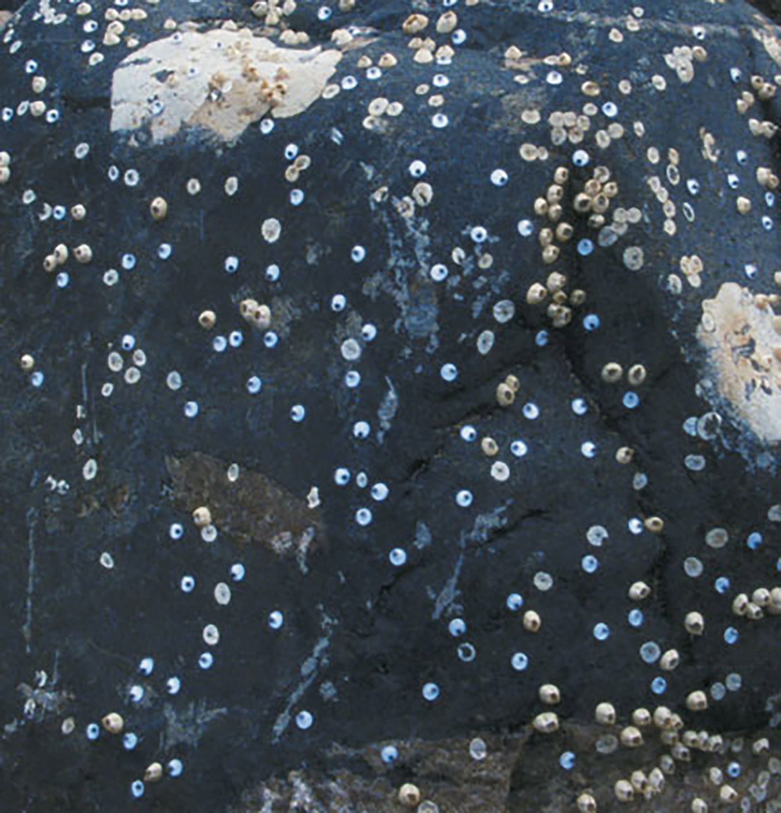 A rock by the shore was covered with small barnacles. When I passed this rock, it felt like tiny eyes were looking out from the surface of it. I found some plastic googly eyes in a craft shop and decided to introduce them all to one another, one type of object providing a kind of camouflage for the other. They were arranged to create social situations that resembled both flirting and mugging.