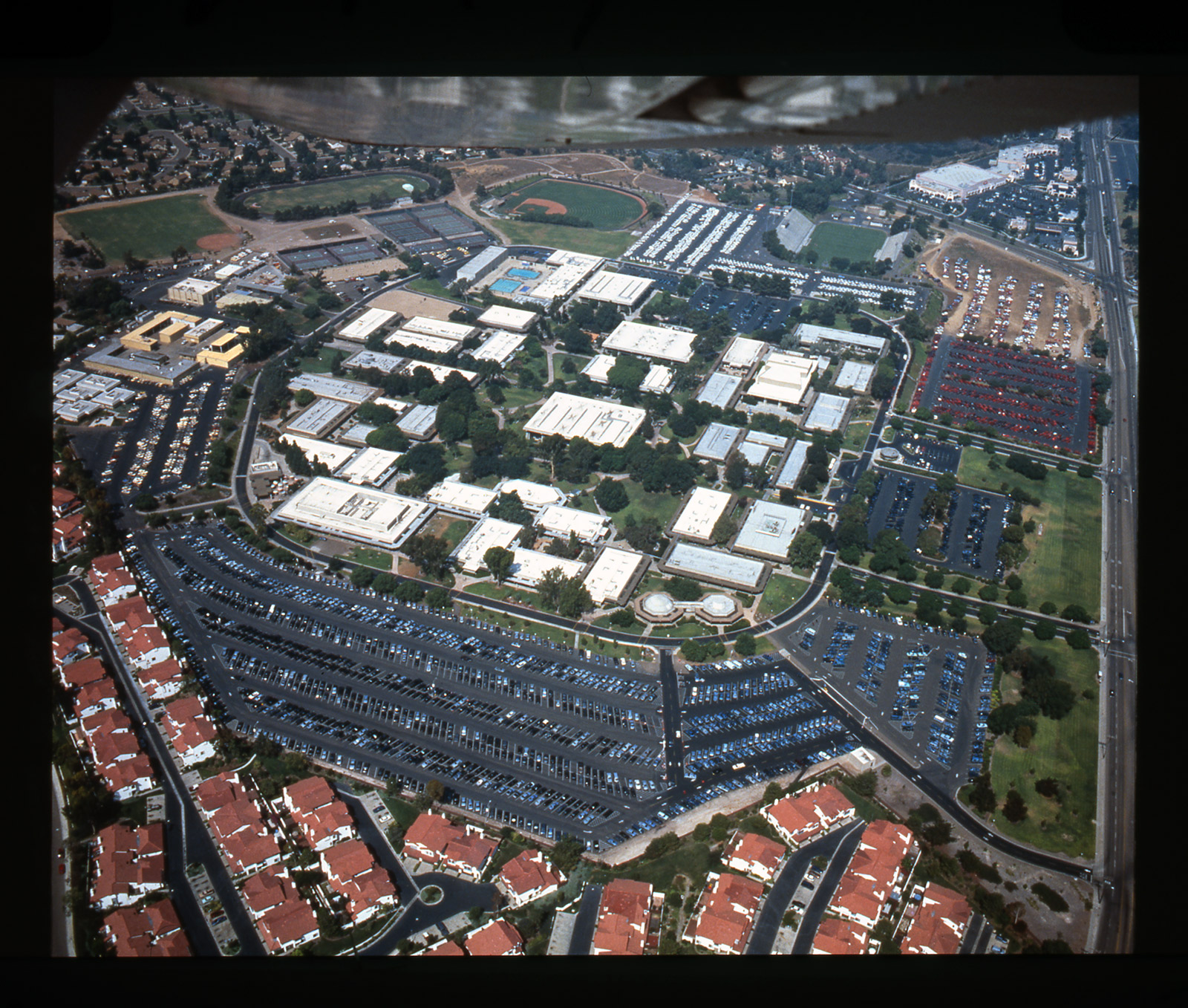 As part of inSITE'94, I was invited to make a piece at Southwestern College in collaboration with Steven Matheson and Mark Tribe. We decided to focus on the huge moat-like parking lots that ringed the school. The lots were enormous, but they were also peripheral spaces that no one paid much attention to. We proposed a project that would shift the attention away from the school buildings at the center of campus and activate this space instead. For one half day, we proposed to sort all the incoming cars by color. Since the lots were all different sizes, this required many weekends of driving around in shopping malls and tabulating car colors to figure out which colors should be assigned to which lots. To generate awareness and enthusiasm for the event, we mounted a huge informational campaign with video, posters, and announcements read in class. Thousands of cars were flyered in the days previous to the event so that drivers would know the easiest way to park based on their car color. On the day of the event and with the help of fifty volunteer traffic directors and car sorters, we sorted more than 10,000 cars between 5 AM until noon, resulting in fields of colored cars. Some lots were extremely small (the “metallic raspberry” lot held only a few cars), whereas others, such as the white lot (17% of cars in San Diego were white) were vast. There were fourteen lots of varying sizes separated into seventeen discrete colors. No one could find their car at the end of the day. An exhibition at the school several months after the CARPARK event featured artifacts and documentation from the car sorting day.