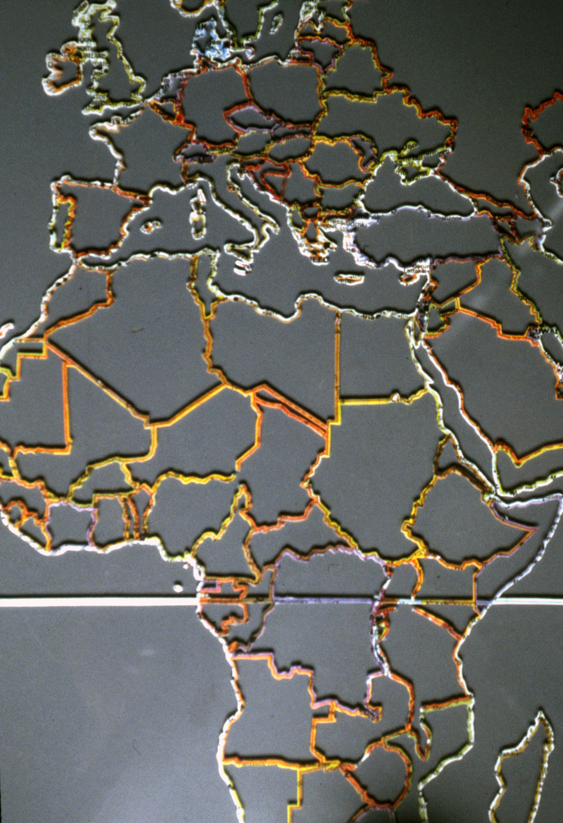 I created a map of the country for an Elgaland/Vargaland-focused exhibition at Thomas Nordanstad gallery in New York in 1997, which visualizes the E/V territories that appear on a conventional map, including all the borders between countries and also the equator.